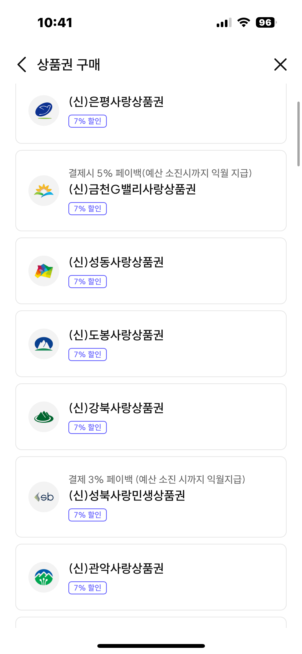 - 3% 페이백: 용산구, 성북구, 강서구, 서대문구, 관악구